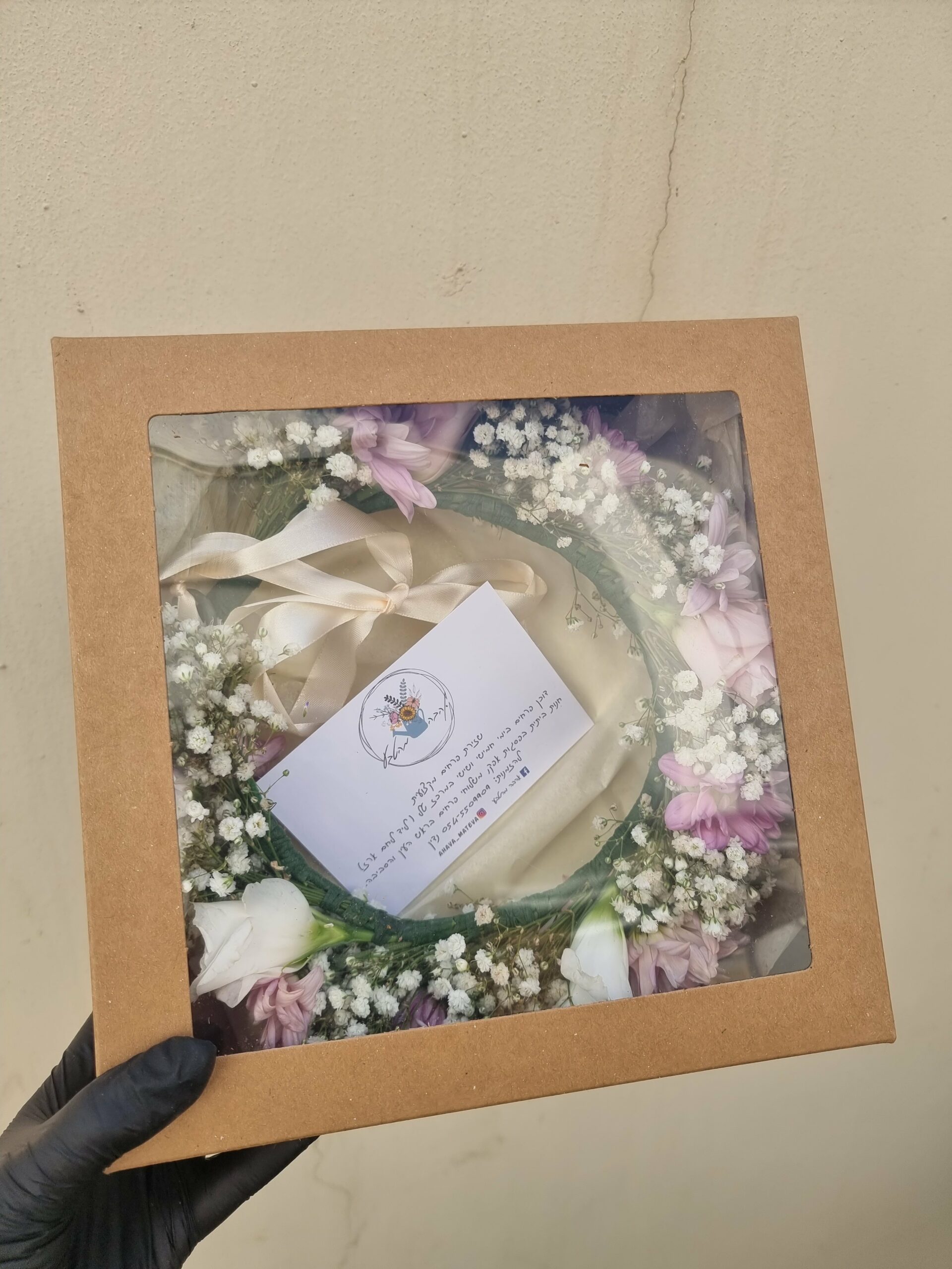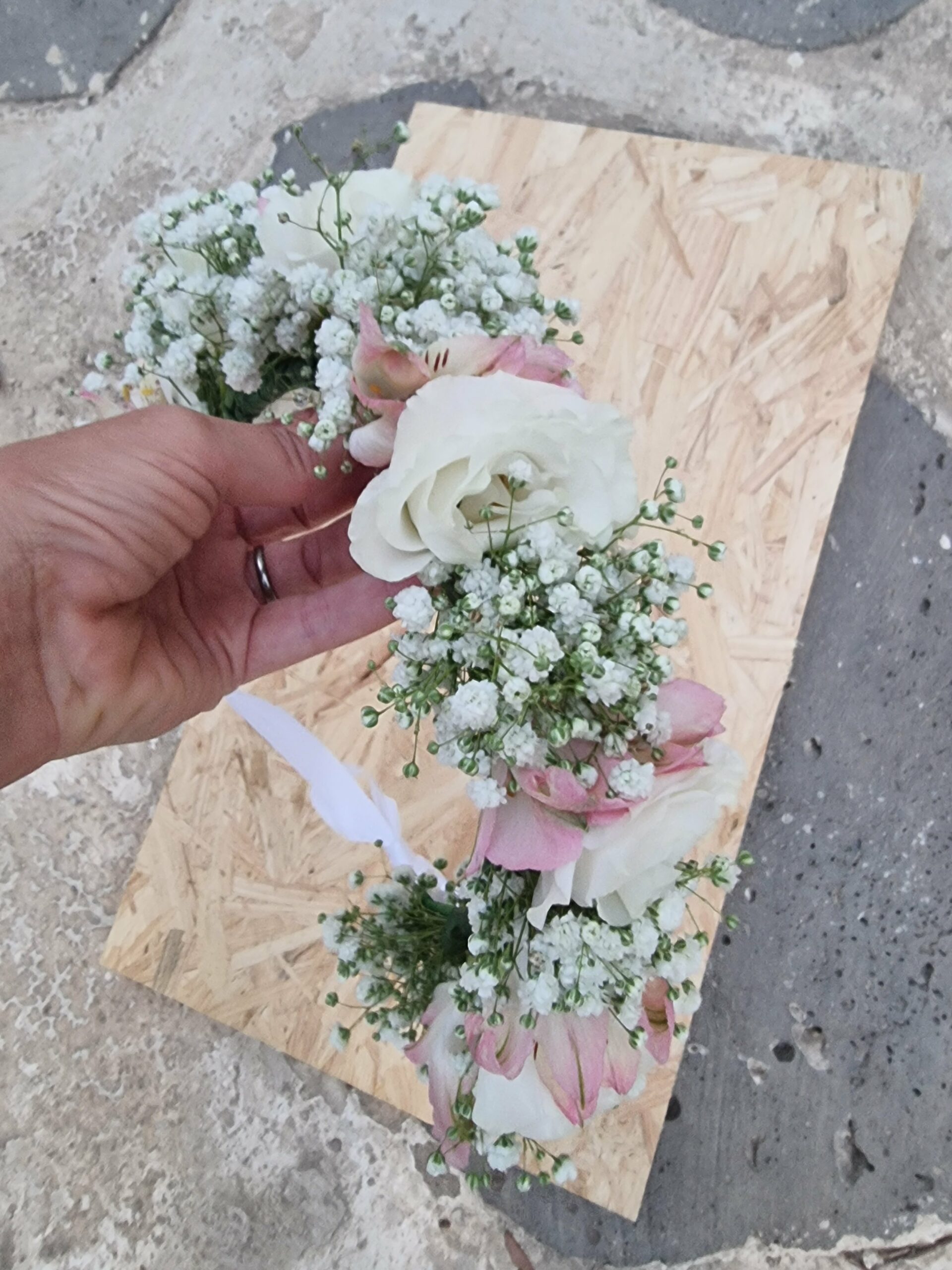 זר לראש שזור פרחים טבעיים בסגנון וצבעים קלאסים
