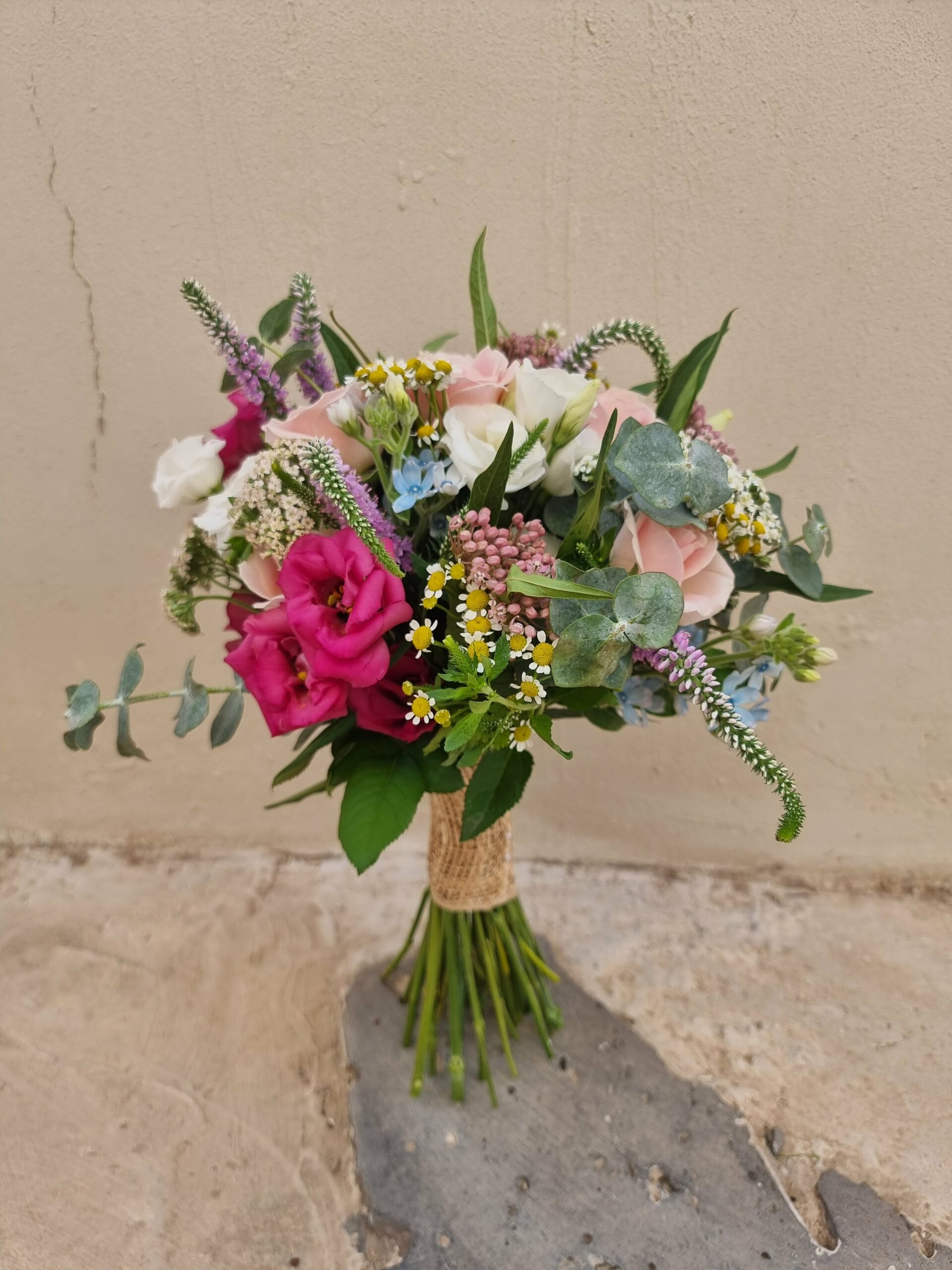 זר כלה בסגנון חופשי , צבעוניות נועזת – שזור בורדים,